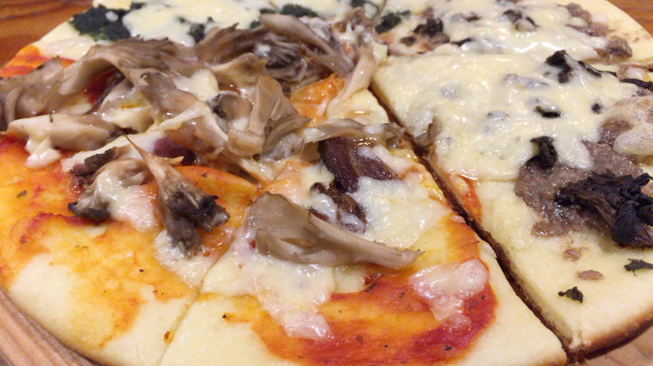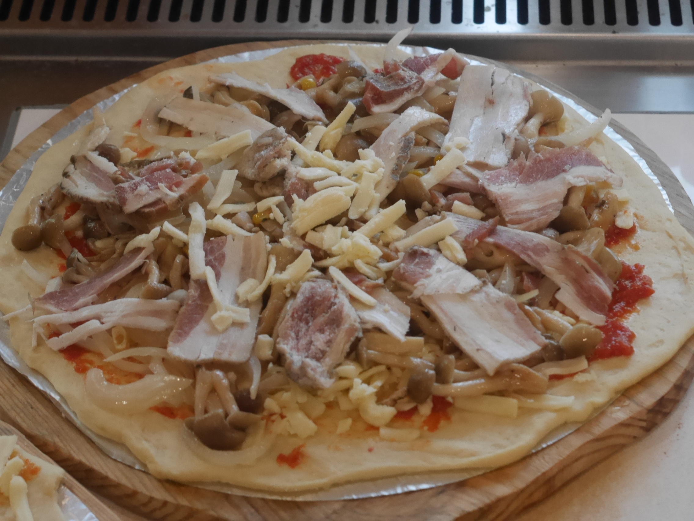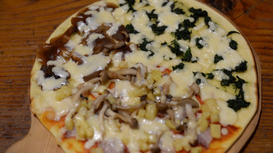 焼き立てピザはここでしか味わえない具材が乗ってます